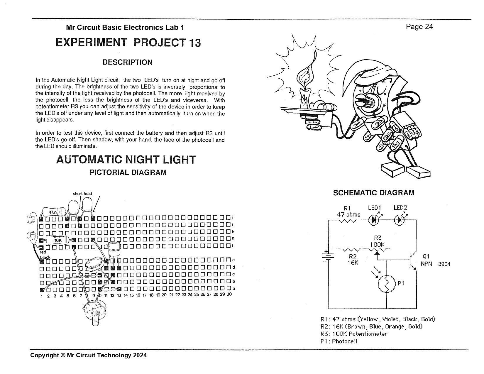MC1-13 Experiment #13 Build an AUTOMATIC NIGHT LIGHT Circuit $4.95