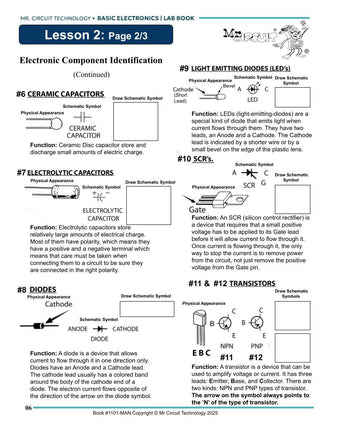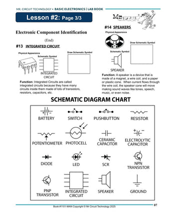 When you order this Mr Circuit Experiment Kit #MC1-00, you will receive a Solderless Circuit Board to be used with the Mr Circuit Science Experiment Kits #MC1-01 through #MC1-30, along with printed instructions for 4 Basic Science Electronics lessons, and a link to the online video presentations where an electronics instructor takes you through these four lessons, step by step.