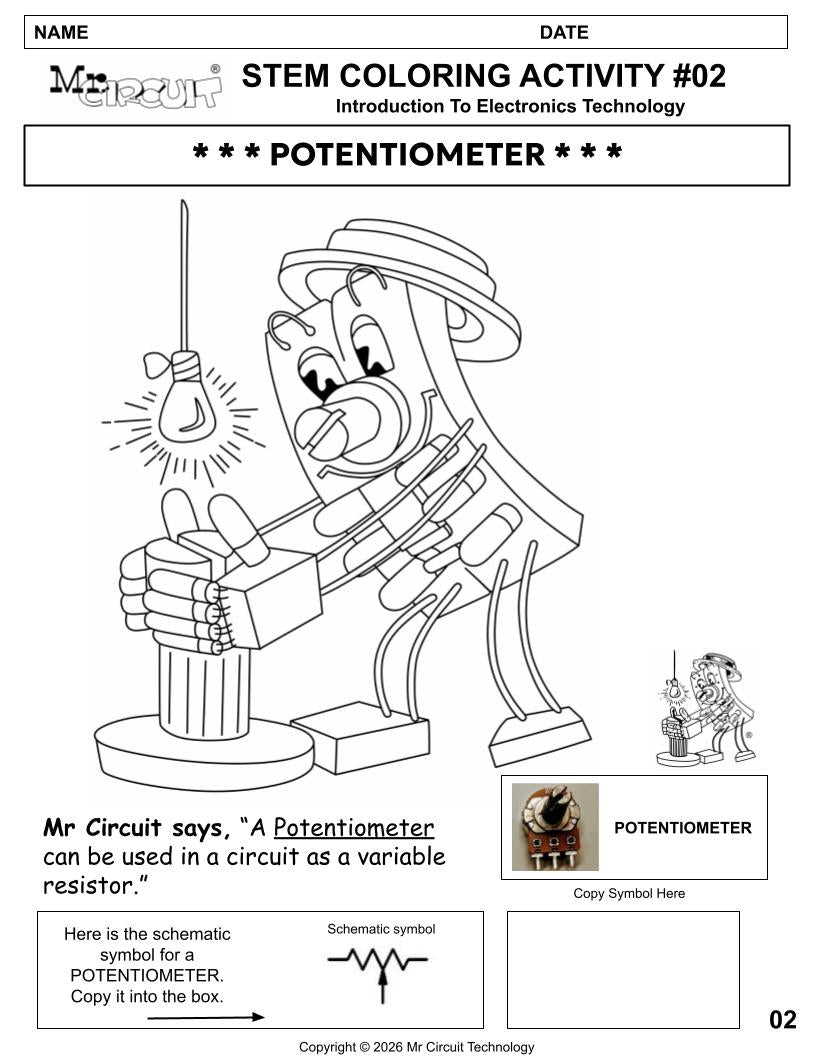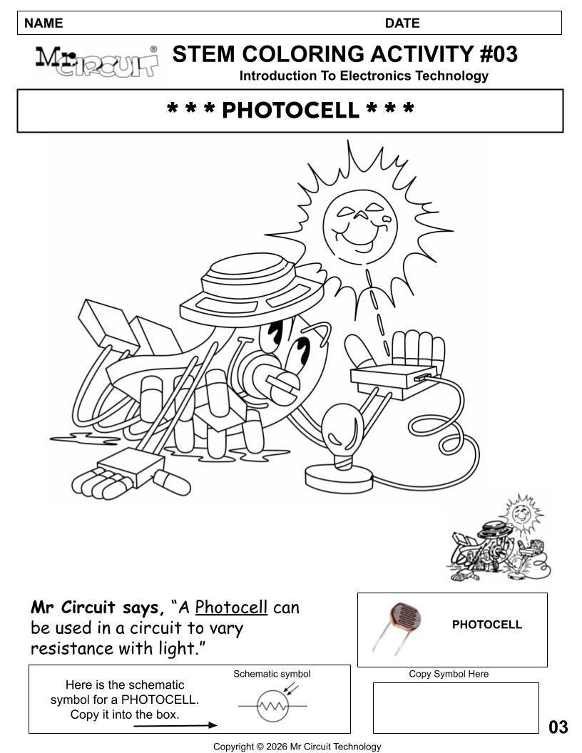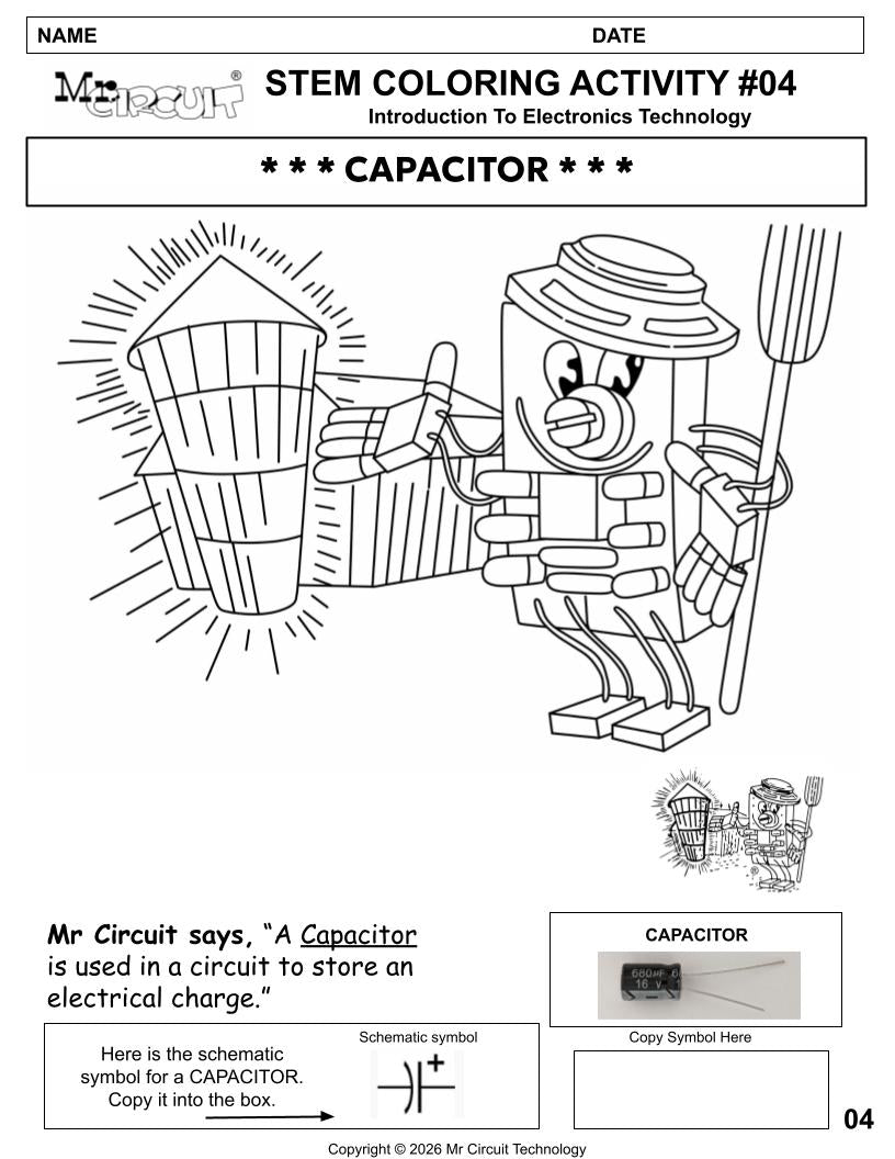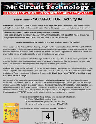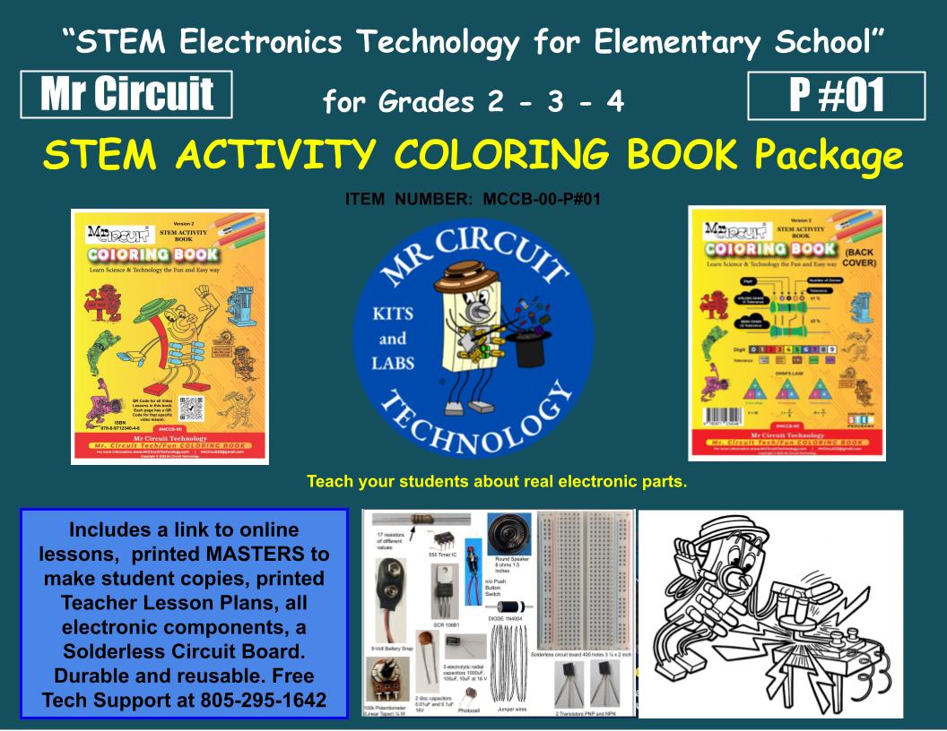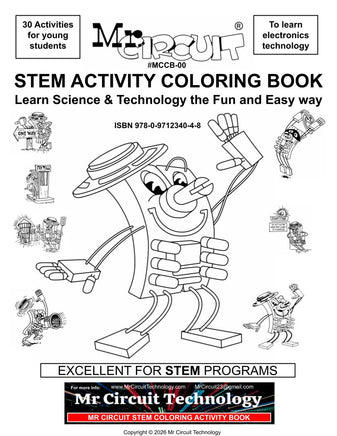 The Mr Circuit Technology Coloring Book Package was created for Grades 2, 3, and 4 Elementary School age children to introduce them to the concepts of science-electronics technology.